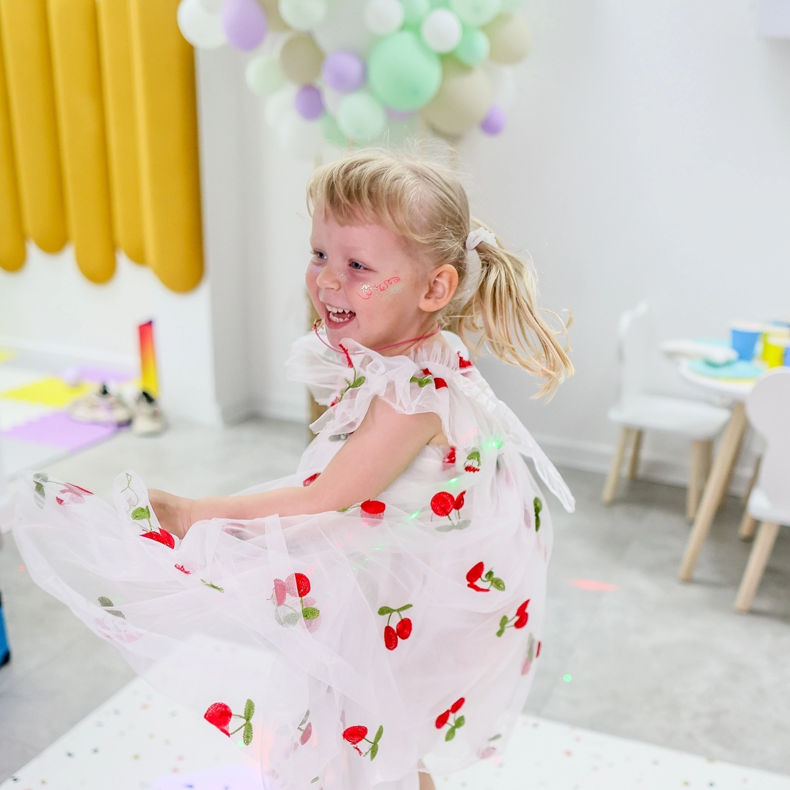 В пространстве могут расположиться до 20 гостей. Посадка рассчитана на 10 детей (до 6 лет) и 10 взрослых. Если дети старше 6 лет тогда мы накрываем общий стол для взрослых и детей (до 14 человек).